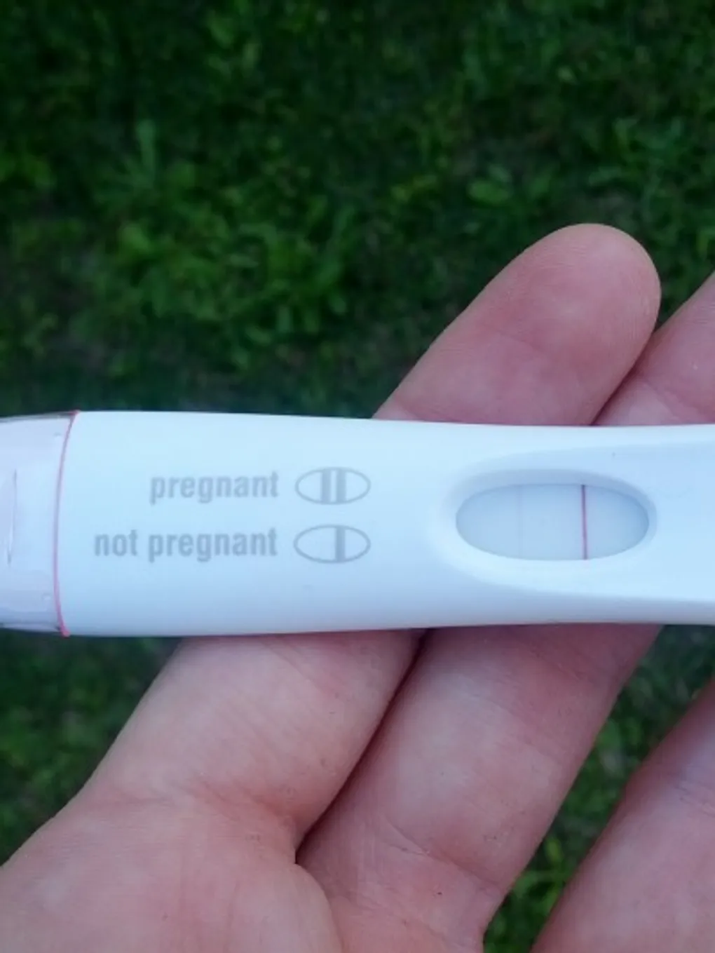 On March 5th, since I was now almost 2 weeks late, I decided to take another test just because. Even though ‘they’ say it’s best to take them early in the morning, and it was afternoon, I didn’t feel like waiting again. I was used to so many “one liner” tests, that I was pretty shocked to see there might actually be two this time! Although even when I tried taking a picture of it (proof for Stefen) the second line wasn’t visible, so I brought it to the back yard to get a better picture of it.