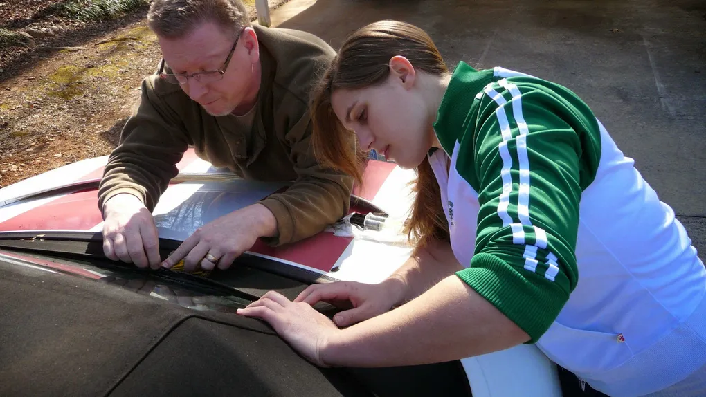 Stefen had gone to work and given me the task of fixing/gluing his camaro window to the top (long story has to do with me accidentally shattering the glass window and him having to buy a whole new cover and window, which wasn’t securely closed in. But back to the short story…) I was in GA and needed something to make the time go by while he was working. I was feeling confident in being able to do this by myself and knew he’d be happy when he got home. As soon as I got outside with all my necessary supplies though, out came his dad, who insisted on taking over and doing it mostly himself. I tried convincing him I could do it by myself, but he ignored me. We met somewhere in the middle and worked on it together. We didn’t have to talk (because I don’t usually do much of that in person anyway) and we didn’t have some huge bonding moment where we walked away closer than ever. We just stood there, working together, and at the end we both smiled because we were pretty happy with what we had accomplished.