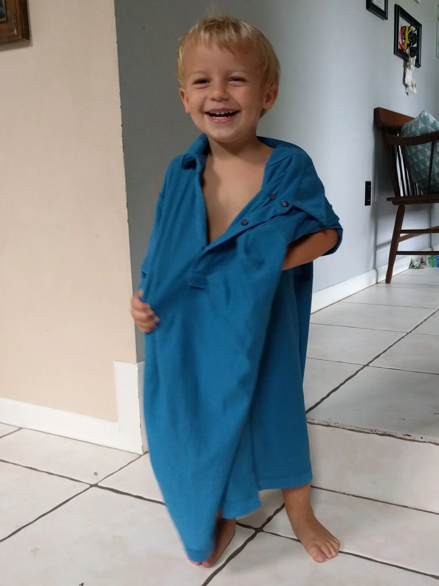 - He always tells me to be, “gentle like daddy.” When I’m wiping his face off after eating a messy meal, or washing his hair, which he HATES by the way, at bath time, he says every time, “Be gentle like daddy.” When he started this, I thought it was funny but also a little strange to me. I mean he’s telling me, his mom—who cuddles him all day and night, nurses him, comforts him—to be gentle like daddy—who is big and strong, works all day and then comes home and works more pulling out weeds in the yard, nailing boards with a big hammer. The man who throws him high in the air, and has a pretty impressive “roar” when playing chase.