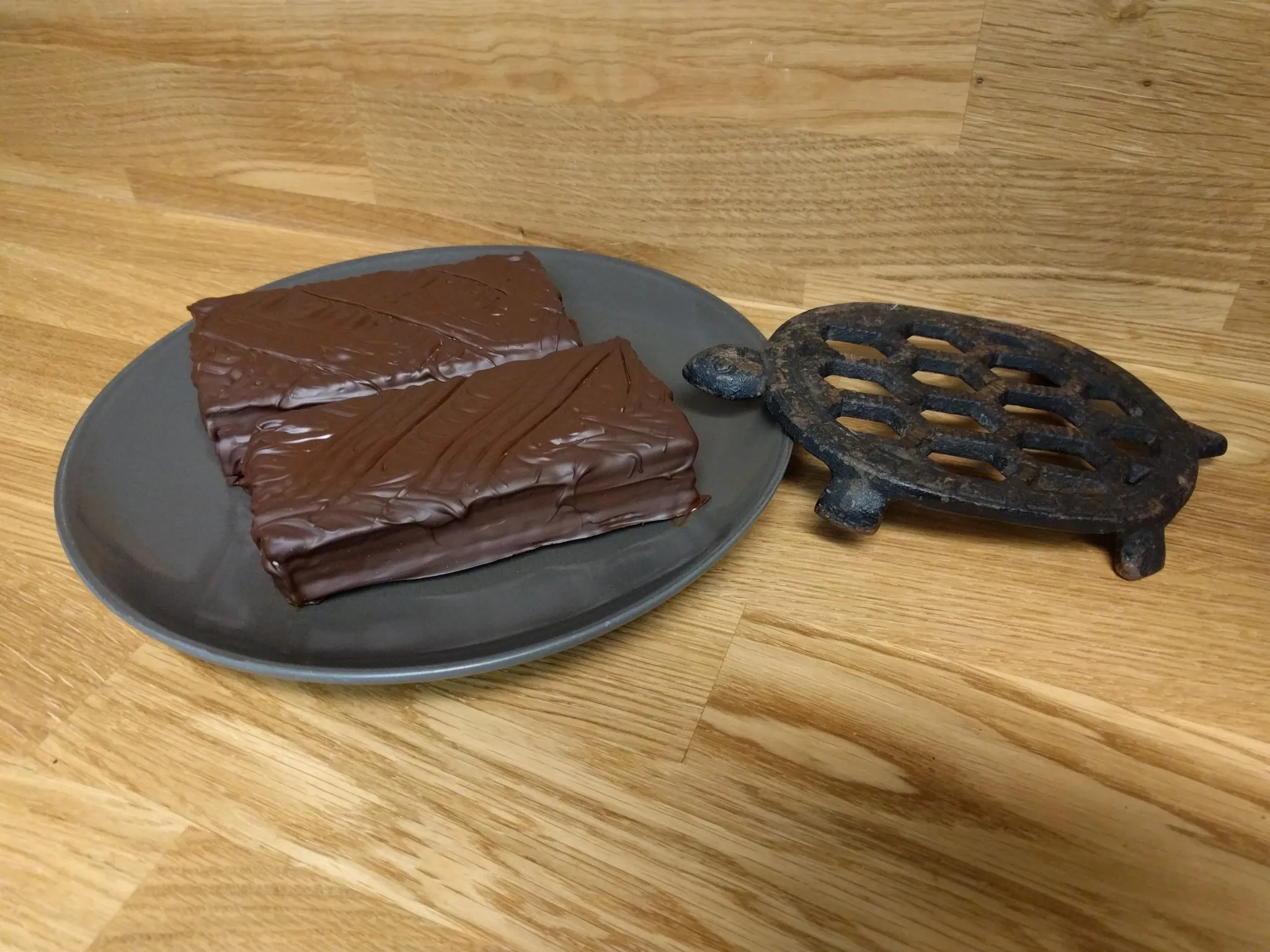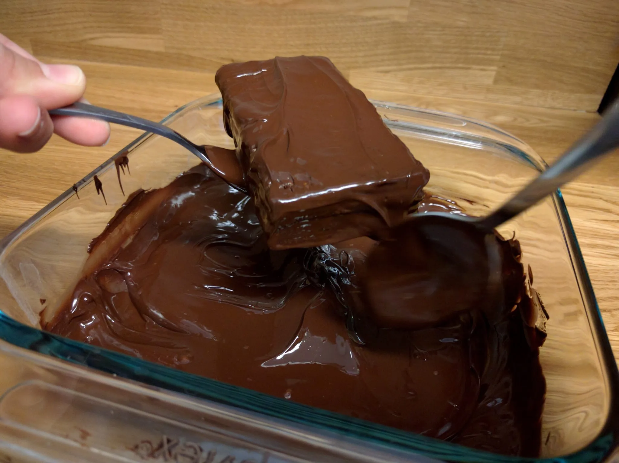 - Place in fridge for a few minutes or if you have the patience let it sit on the counter until the chocolate is set.