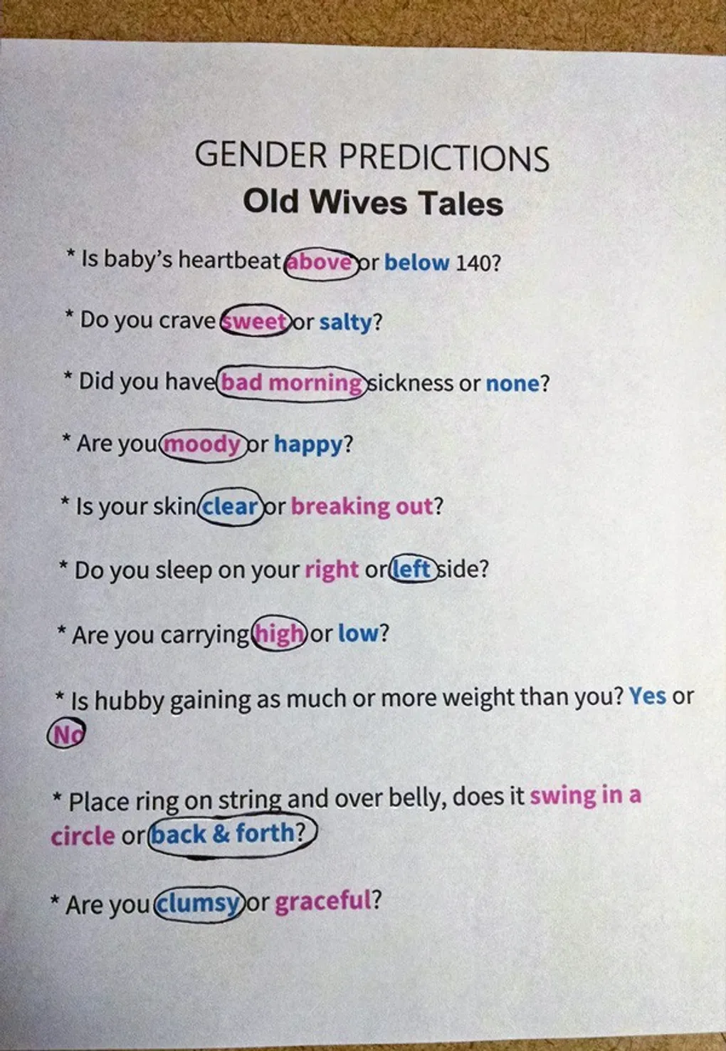 When I was pregnant with Blake I tried all the old wives tales to predict the sex. About half were right and half were wrong. Imagine that, it’s like it’s a 50/50 chance.