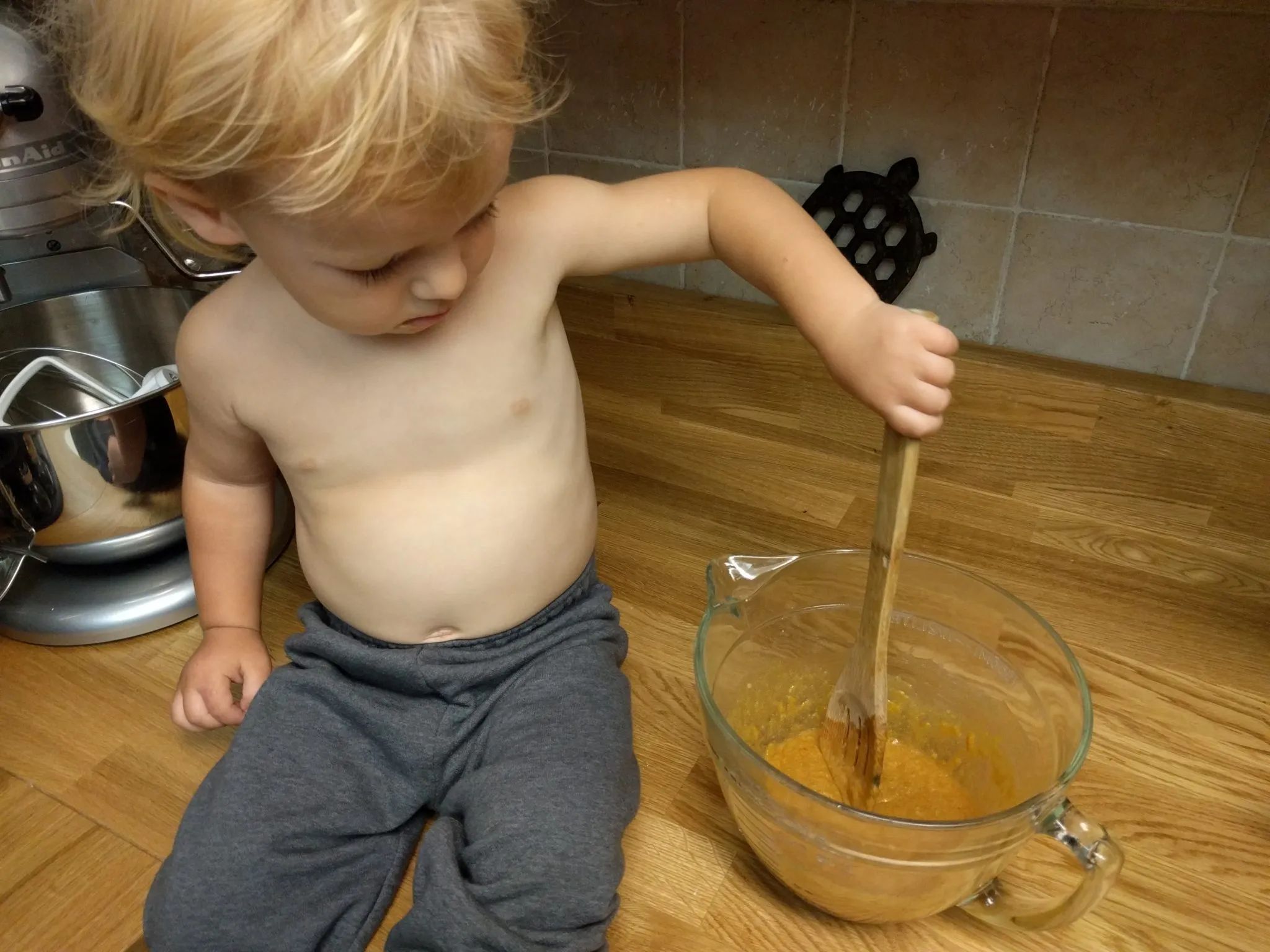 Just as I expected he walked into the living room with big eyes, pointing at everything he saw. “Whoaaaa punkins!” “leaves!” *pointing and laughing at the pilgrim dolls* “whoaaa”. He is especially obsessed with the pumpkin salt & pepper shakers on our kitchen table, the “little punkins”. After seeing how excited he was with all the fake pumpkins everywhere I picked up a little, real pumpkin for him from Publix because I knew he’d love it, and he did. He carried it around the house all night and then brought it to bed with him.